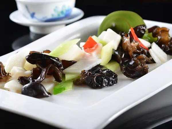 5 木耳盛盆里,放入盐味精,香油,松仁,芥末酱。