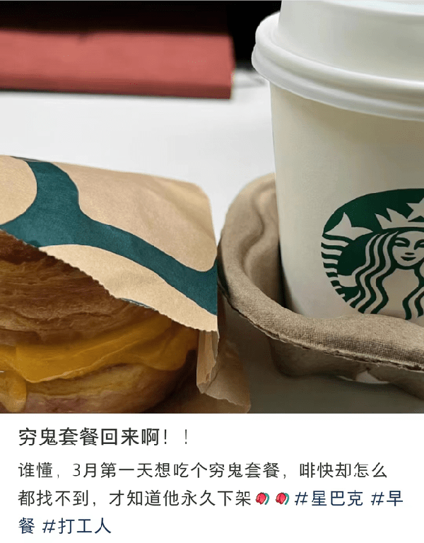 在冲浪的时候突然刷到,星巴克的“穷鬼套餐”,宣布关闭了。