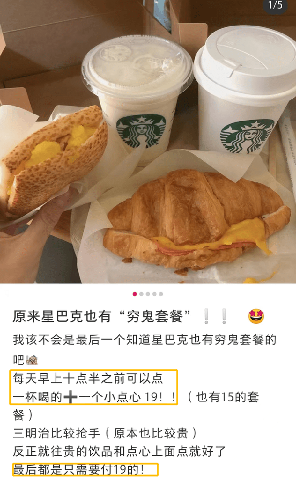 发现星巴克的“穷鬼套餐”不光有,而且还很划算(仅对星巴克平时的价格来说)(不代表个人认为很划算的看法)。