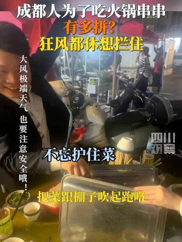 原标题:四川成都,大风天拼命保护火锅串串:我的菜才下锅!