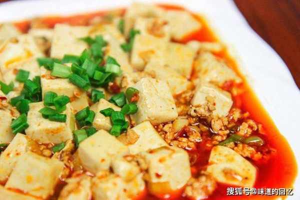 ,最后撒上葱花这盘香辣味浓的麻婆豆腐就可以食用了。