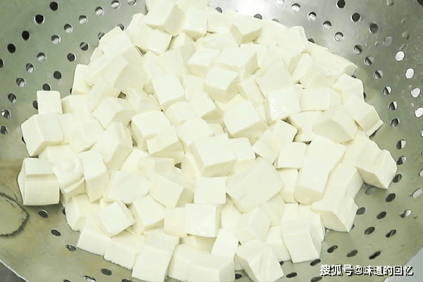 豆腐要使用中等硬度的豆腐,切成2厘米左右的小方块。