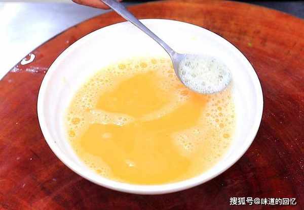 碗中打入三个鸡蛋,加入一勺食盐,一勺鸡精,搅拌打散成蛋液,倒入适量的凉开水拌匀,鸡蛋液和水的比例为1:2,把蛋液上的气泡用小勺撇干净。