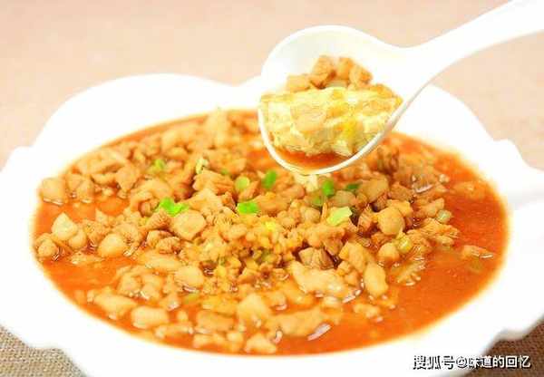 6.鸡蛋羹上,浇上刚刚炒好的肉汁,
