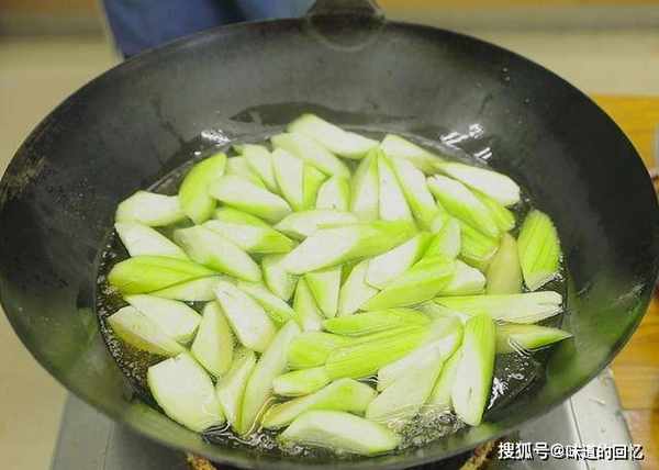 丝瓜下锅炒之前 ,汆水这一步非常重要,不能光用清水, 得先加点植物油 ,方便形成油膜保持翠绿。