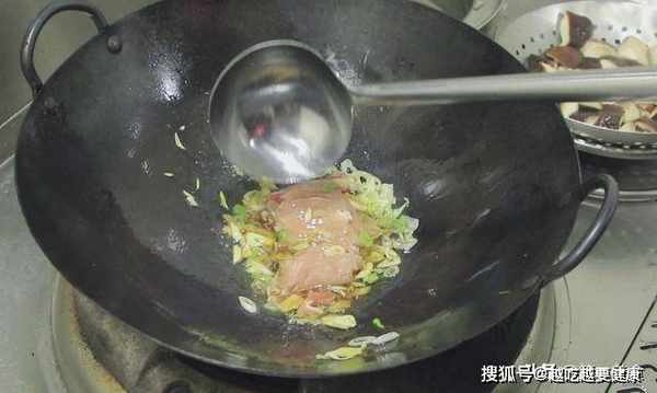 接下来我们开始烹饪,锅内烧少许油,油热以后 ,倒入葱姜蒜快速翻炒出香味,倒入蚝油3克,然后倒入肉片,翻炒至肉片发白。