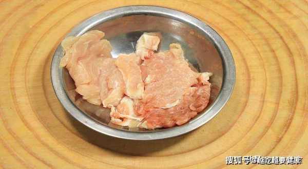 猪瘦肉一小块用手按住 ,切成薄片,放在小盆中 。