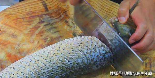 草鱼800克,如果家庭自己吃的话,买鱼的时候可以让卖家帮忙宰杀了,回家后,再次清洗干净,然后剁去鱼头,从头部沿脊骨把鱼片开。