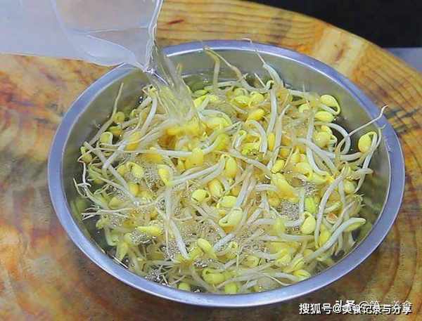 就可以倒出豆腐皮和黄豆芽,垫在盘底。