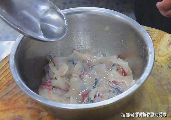 把切好的鱼片再次清洗干净,挤去水分,放在盆中,放入