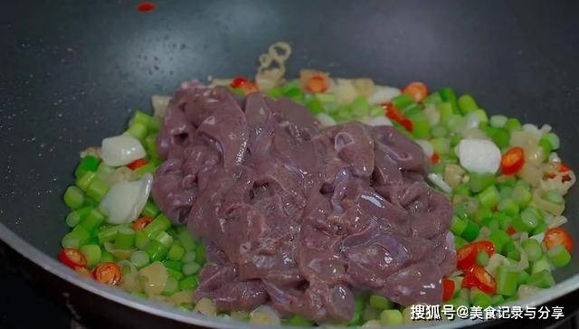 6、这道爆炒猪肝香辣入味,下饭又下酒,非常的好吃。
