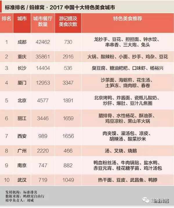 近日,一份“2017我们国家十大特色美食城市”榜单在网上疯了!