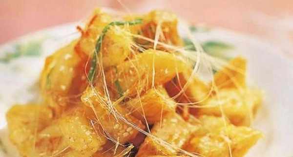 山药是山东的传统名菜。它是通过将糖和水炒至粘稠并加入山药制成的。拉起它可以达到十几英尺高,这非常有趣。