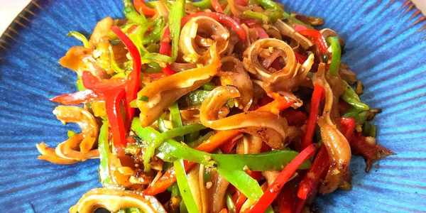 食材:卤好的猪耳、辣椒、芹菜、蒜瓣、料酒、蚝油、酱油、盐