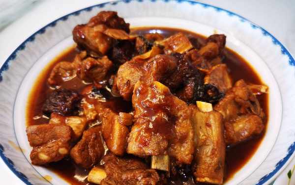 食材:排骨、话梅、葱姜、桃园建民西瓜酱、八角、桂皮、香叶、冰糖、料酒