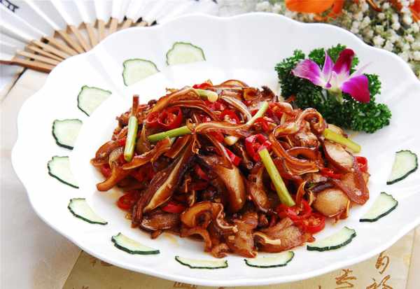 3、然后热锅烧油,放入蒜末和辣椒碎炒香,放入猪耳,翻炒一会儿,加入适量的料酒、蚝油、酱油、盐,放入芹菜,继续翻炒到食材成熟入味,即可;