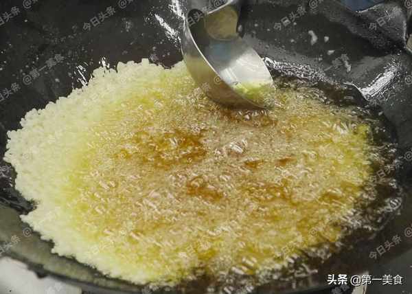 保持年糕酥脆、油炸成型,轻轻倒出,我们的锅就炸好了。