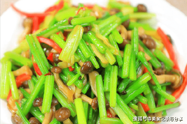 一道清淡营养的蟹味菇炒芹菜就做好了。