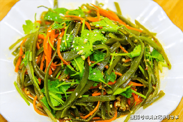 最后放上一点香菜,再次拌匀,就可以装盘上桌了。