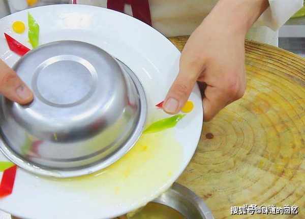 倒入蜂蜜适量,和南瓜汁搅拌在一起,取一个盘子,把南瓜倒扣在盘子里。