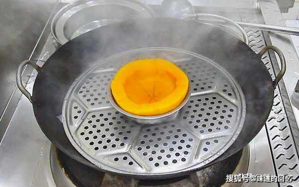 锅内烧水,放上蓖子,把南瓜放在蓖子上面蒸十分钟左右,蒸锅密封不严的话,要适当增加蒸制的时间。