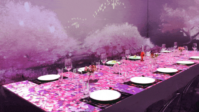 5、从菜品和环境上进行打造,将菜品以及环境进行投影,让顾客们感受到一种全息餐厅的魅力。