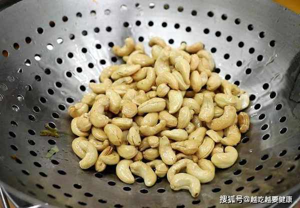 2.锅内多烧一些油,油温两成热时倒入腰果,开小火炸出里面的水分,火太大的话腰果容易糊,炸其他坚果也是一样的,慢慢地升高油温,把水分炸干,腰果微微发黄以后关火,继续炸上五六秒钟倒出来。