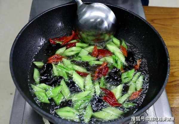 3.烧半锅开水,倒入黄瓜、红椒和木耳稍微烫一下,黄瓜返青以后捞出来,立即用凉水冲凉,这样吃起来更脆。