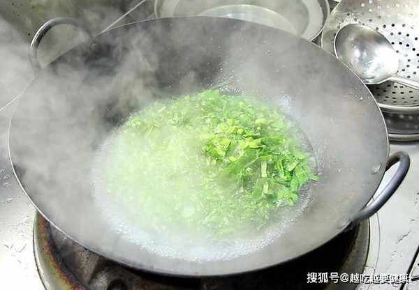 2.锅内加入少许植物油,一勺食盐,淡盐水能使煮出来的芥兰颜色更加鲜亮,植物油能在芥兰表面形成油膜,防止里面的营养流失,水烧开以后把芥兰倒入锅中,快速焯水20秒钟,把芥兰倒出来用凉水冲洗几下,以免芥兰回软。