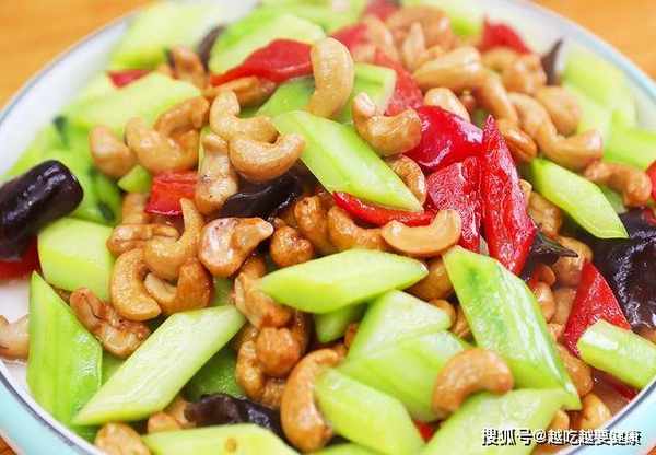 4.锅内加少许底油,淋入一点清水,加入适量的食盐、味精、鸡粉、芝麻香油搅拌化开调料,芶入一点水淀粉,把汤汁收至微微发黏,倒入配菜快速地翻匀,再倒入腰果稍微翻炒几下即可出锅,腰果千万不要久炒,不然吃着就不酥了,这道清香解腻的青瓜腰果就做好了。