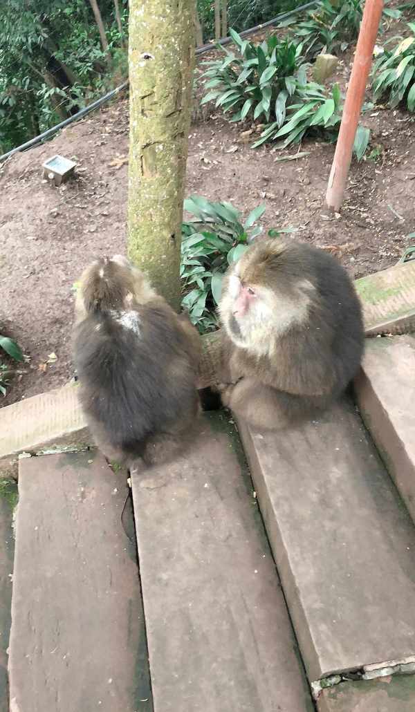 猴区是吸引很多人的地方,猴头们都充满灵性,非常的可爱,它们不怕人,有时还要打劫你,一群人时自然不怕,一个人时也无需害怕。平稳下心情,不慌不乱,猴头要造次事,竹竿敲地大声喝道:“猴头,休要造次,包里没有吃的”,猴头们就会乖乖地蹲在地上不动了,很憨、很可爱;如果你能镇定地出声念佛号或咒语(比如:六字真言)那是很好的。(我就是这样应付的,所见到的猴头们都表现乖巧。重点是:自己一定要稳住,要怀着一颗善心,不能生恶意,不能讨厌它们,更不能打它们,要知道你惹急了它们,它们人多力量大,那就麻烦了。)