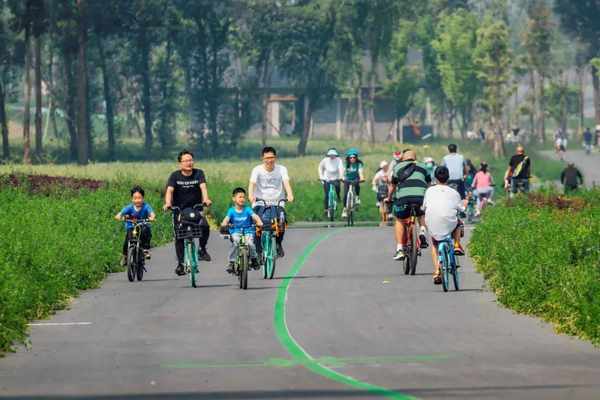 在2022年初,成都市内总长100公里的环城绿道全线闭合,一路串联起133平方公里的生态公园、20平方公里的生态水系和24平方公里的城市森林。成都人热爱锻炼,在环城绿道上骑自行车,成为了成都这两年来最时髦的都市活动;每逢节假日,锦城湖公园的绿道起始点甚至还会出现堵车的壮观景象。