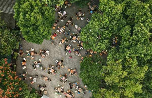 成都高新区的露天茶铺,浸润着一座城市地道的人间烟火气。/视觉成都