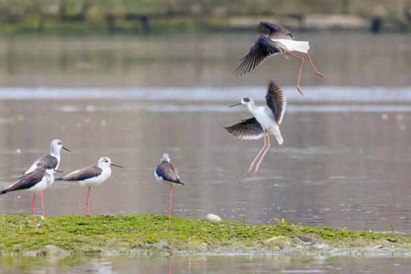 成都锦江里的黑翅长脚鹬。/一叶知秋 摄