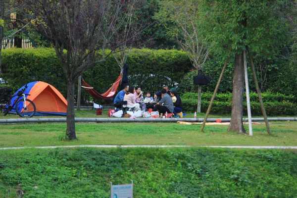 周末在温江区万春镇江安河边露营的人们。/视觉成都