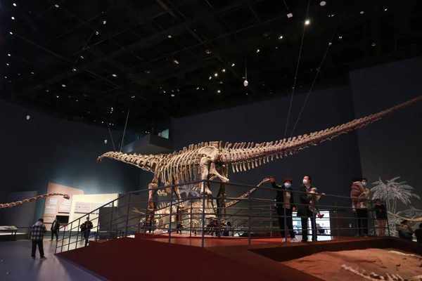 成都自然博物馆的“镇馆之宝”合川马门溪龙正型标本是亚洲最大的完整恐龙化石。/桑榆 摄