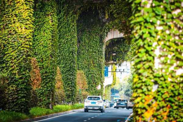 成都二环高架桥下长满爬山虎,一派“绿野仙踪”。/视觉成都