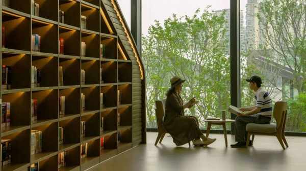 在天府人文艺术图书馆,人们在休闲惬意中轻谈。/视觉成都