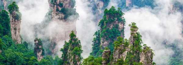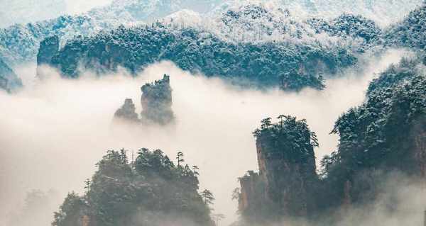 张家界,风景秀奇险峻,有着“扩大的盆景,缩小的仙山”之美称,景区内的奇峰异石宛如一幅巨大的水墨画卷,以大地作为画卷,群峰为笔,薄云如墨,奇峰岩壁如柱如笋,秀姿万千的风光,乃天地灵气幻化,美若仙境,让人惊叹于大自然的鬼斧神工。