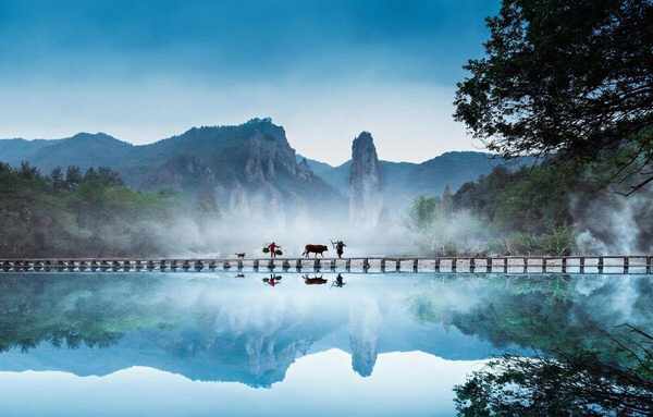 三月仙女下凡季,追梦寻芳到仙都。仙都的自然山水美景,峰岩奇绝,山灵水秀,在烟雨蒙蒙中,多了几分灵气,多了几分神秘,烟雾缭绕的朱潭山,还有近处的溪水石桥,游走在山水之间,很有仙境的感觉!