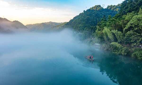 雾漫小东江,仿佛身在江湖仙境之中,远山、江雾和小渔船构成了一幅山水画卷,最治愈人心的便是这世间的山水风光,半山半水半朦胧,一叶小舟泛江中,两岸青山水中映,烟雾茫茫碧水清。雾气缭绕山水间,体验雾漫小东江奇景。