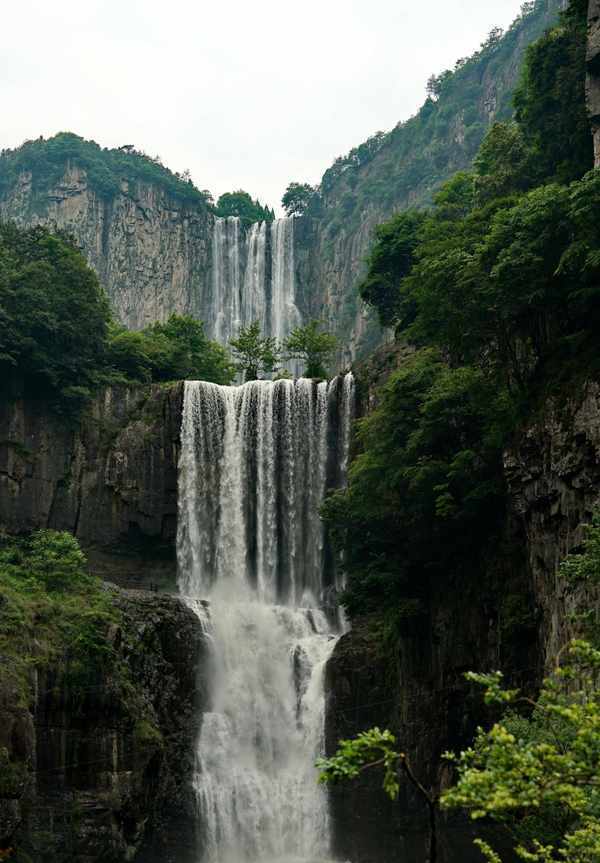 百丈漈为“V”形深壑巨涧,涧长1200米,落差达353米,形成三折瀑布,俗称头漈、二漈、三漈,因动作瀑布高度合计272米,被誉为“中华第一高瀑”。