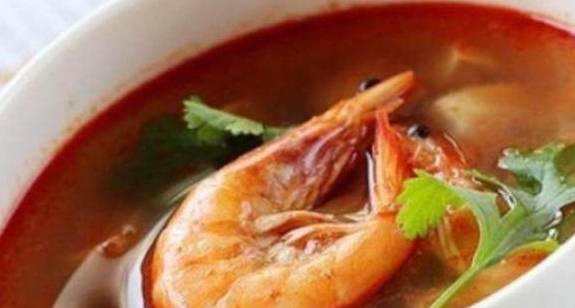 3、汤锅里加入冬阴功酱煮开后,放入焯好的蘑菇和大虾再次煮开,调入适量鱼露、白胡椒粉和盐搅匀后撇掉浮沫;