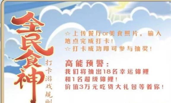 打卡只需两步:上传餐厅或美食照片,输入地点即可完成打卡,打卡即可领取口碑红包并参与抽取锦鲤大奖。