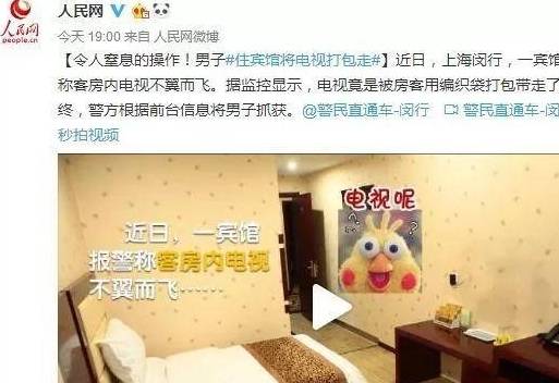 【令人窒息的操作!男子#住宾馆将电视打包走#】近日,上海闵行,一宾馆报警称客房内电视不翼而飞。据监控显示,电视竟是被房客用编织袋打包带走了。最终,警方根据前台信息将男子抓获。@警民直通车-闵行