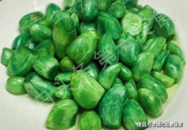 这是腌制半个月后的腊八蒜,碧绿碧绿的,真正腌好的腊八蒜由内到外全部一个色,过年配饺子吃那叫一个得劲,一道酸脆爽口的腊八蒜就做好了。