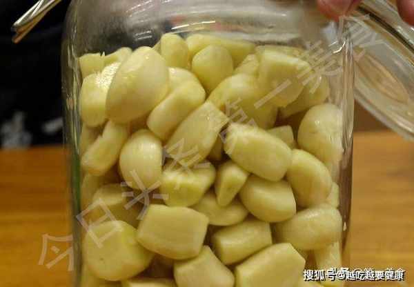 准备适量的大蒜,把外皮剥干净放进罐子里,大家剥蒜的时候一定要注意,尽量不要把蒜肉的表面划伤,否则泡出来不好看。