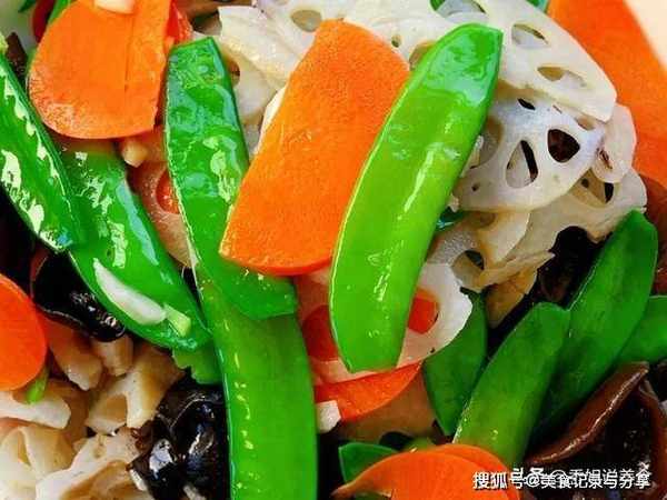 莲藕,荷兰豆,黑木耳,胡萝卜,葱蒜。