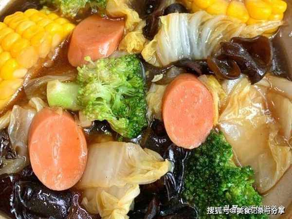 1、娃娃菜清洗干净切成小段。西兰花剪成小朵放入清水中,加入食盐浸泡十分钟,然后清洗干净。玉米清洗干净切成小块,火腿肠斜切成片即可。