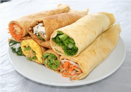 山东煎饼起源于泰山,非常薄。它们是由谷物和谷物制成的。